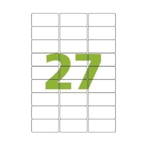 - Marca: Colacril - Modelo: Etiqueta Adesiva - Referência: CA4255 - Cor: Branco - Etiqueta retangular - Formato da folha: A4 - Contém 675 etiquetas - 27 etiquetas por folha e 25 folhas por embalagem - Impressão: Inkjet e Laser - Dimensões da etiqueta: 6,35 x 3,1cm LxA - Composição: papel com adesivo acrílico