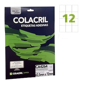 Etiqueta Adesiva Colacril A4 CA4264 63,5x72mm 25Fls As etiquetas Colacril podem ser utilizadas em casa ou no trabalho, assim mantendo a organização e a identificação. Ideal para uso em caixas, correspondências, documentos, pastas, pequenos objetos, código de barras, mala direta, encomendas, separação de materiais, arquivos, entre outros. - Marca: Colacril- Modelo: Etiqueta Adesiva- Referência: CA4264- Cor: Branco- Etiqueta retangular- Formato da folha: A4- Contém 300 etiquetas- 12 etiquetas por folha e 25 folhas por embalagem- Impressão: Inkjet e Laser- Dimensões da etiqueta: 6,35 x 7,2cm LxA - Composição: papel com adesivo acrílico