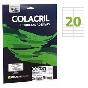 Etiqueta Adesiva Colacril Carta CC081 25,4x101,6mm C/200 As etiquetas Colacril podem ser utilizadas em casa ou no trabalho, assim identificando e mantendo a organização. Ideal para uso em arquivos, caixas, correspondências, documentos, encomendas, impressão de código de barras, mala direta, pastas, pequenos objetos, separação de materiais, entre outros.