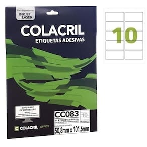 Etiqueta Adesiva Colacril Carta CC083 50,8x101,6mm C/100 As etiquetas Colacril podem ser utilizadas em casa ou no trabalho, assim identificando e mantendo a organização. Ideal para uso em arquivos, caixas, correspondências, documentos, encomendas, impressão de código de barras, mala direta, pastas, pequenos objetos, separação de materiais, entre outros.