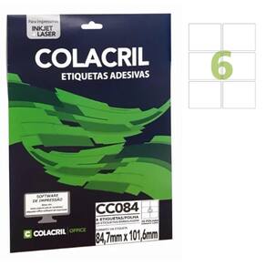 Etiqueta Adesiva Colacril Carta CC084 84,7x101,6mm C/60 As etiquetas Colacril podem ser utilizadas em casa ou no trabalho, assim identificando e mantendo a organização. Ideal para uso em arquivos, caixas, correspondências, documentos, encomendas, impressão de código de barras, mala direta, pastas, pequenos objetos, separação de materiais, entre outros.