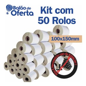 Kit com 50 Rolos de Etiqueta Adesiva Térmica 100x150 Serrilhada para E-Commerce (200 etiquetas por rolo)**