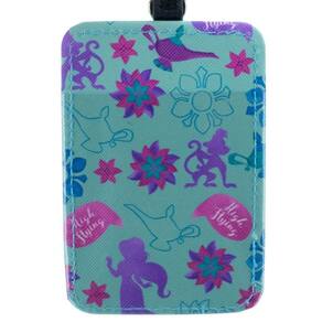 Etiqueta de identificação de bagagem de 10.5 x 7.5 cm de dimensão, na cor preta com estampa dos personagens do filme Aladdin. Material: poliuretano Marca: Não Informado