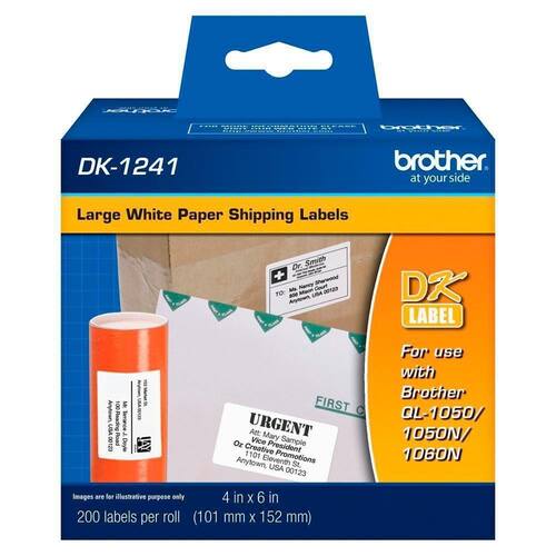 Etiqueta brother dk 1241 grande formato. Ideal para fixar dados de postagem em caixas. Tamanho 102 x 152mm (4" x 6"). 200 unidades por rolo e 1 rolo por caixa.
