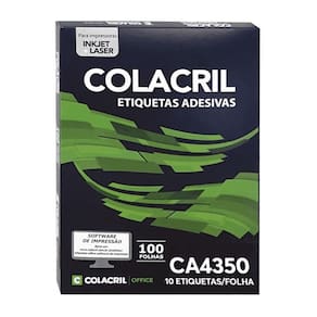 Etiqueta Colacril Carta Inkjet + Laser Ca4350 Com 1000 Un Etiquetas indicadas para impressoras inkjet e laser de uso doméstico ou corporativo. 99mm x 55,8mm. Etiqueta Adesiva A4 CA4350 99 X 55,8 Mm 100 Folhas Colacril Etiquetas indicadas para impressoras inkjet e laser de uso doméstico ou corporativo. Etiqueta Auto-Adesiva disposta em folha no formato A4 adequada para impressora : Ink-Jet e Laser Coluna Por Folha: 02 Colunas Etiqueta Por Folha: 10 Etiquetas Medidas: 99 mm x 55,8 mm 9,9 x 5,5 cm Código: CA4350 Embalagem: 100 Folhas Etiqueta por embalagem: 1000 Etiquetas Ean: 7897690103905