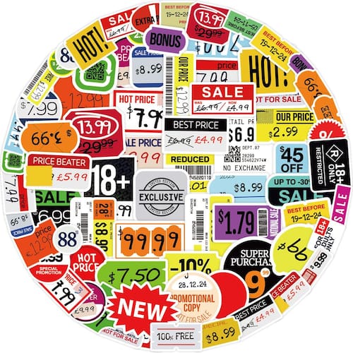 Designs criativos de etiquetas retrô — apresenta 50 decalques de vinil exclusivos com etiquetas de preços atraentes, elementos de código de barras, placas promocionais e tipografia colorida em um estilo estético nostálgico. Material durável e impermeável — Feito de vinil de alta qualidade que é à prova d'água, resistente a rasgos e à prova de desbotamento, tornando-o ideal para uso interno ou externo. Fácil de aplicar e remover — A aplicação Peel-and-Stick funciona em qualquer superfície lisa e é removida de forma limpa, sem deixar resíduos pegajosos, perfeita para decorar sua tecnologia ou papelaria. Perfeito para personalização — Ótimo para personalizar diários, laptops, copos, capas de celular, skates, garrafas de água e agendas com um toque vintage divertido. Variedade e valor em um conjunto — Com 50 peças em cada pacote e sem duplicatas, este pacote de decalques oferece excelente variedade para artesanato, decoração estética e projetos criativos.
