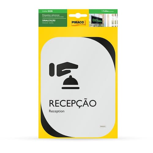 A etiqueta de sinalização Clean Recepção da Pimaco é ideal para identificar de forma clara e elegante a área de recepção em empresas, clínicas, escolas, hotéis e outros ambientes que recebem visitantes.
