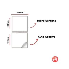 ESPECIFICAÇÕES TÉCNICAS: Material (Substrato): Papel Térmico Adesivo (Não utiliza Ribbon para Impressão) Largura Etiqueta: 100 mm (10 cm) Altura Etiqueta: 100 mm (10 cm) Tubete: (Não aplica) Carreiras: 01 Serrilha: Microserrilha entre Etiquetas Formato: Resma de Etiqueta Adesiva 100mmx100mm (10cmx10cm) Etiquetas Por Resma: 500 etiquetas Peso: 620gr