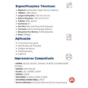 Formato: Resma de Etiqueta Adesiva 100mmx150mm (10cmx15cm)