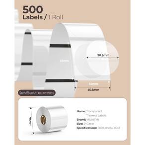 MUNBYN Etiquetas adesivas térmicas transparentes de 5 cm papel redondo para aniversários, chás de bebê, festas, adesivos circulares transparentes à prova d'água para logotipos, design DIY, pequenas empresas, escritórios, inventário, pacotes, embrulhos, material escolar, classificação de armazenamento, garrafa, correio, marca, aviso. - Especificações: Etiquetas Munbyn autênticas -- adesivos térmicos transparentes com tamanho real para impressão: círculo de 5 cm (50,8 mm x 50,8 mm), tamanho da configuração da impressora: 2,09 x 2,09 polegadas (53 mm x 53 mm), diâmetro do rolo de papel: 2,68" (68 mm), 500 etiquetas/rolo, 1 rolo. - Etiquetas térmicas transparentes: este papel térmico praticamente invisível e incolor é ideal para aderir à cor de fundo de qualquer item. Pode exibir perfeitamente apenas o que você deseja imprimir. Não é necessária tinta ou fita! - Funciona com impressora térmica: as etiquetas da impressora são perfeitamente compatíveis com Munbyn 129B, 130B, 941B, Nelko PL70e-bt; Não compatível com Rollo X1040, Phomemo Pm-241-bt, Jadens JD-328BT. - Use Advantage Collection: Desfrute de uma impressão clara e durável com um autoadesivo forte que resiste a óleo e outras substâncias. Proteja suas etiquetas contra danos causados pela água e garanta que elas durem mais tempo. - Uso versátil na vida: use adesivos térmicos para organizar itens domésticos, selar convites de casamento, correio, documentos de escritório, avisos de perigo ou utensílios no laboratório, inventário, etiquetas de tamanho, etc. - Uso versátil nos negócios: melhore a força da sua marca e a experiência do cliente por meio de adesivos de agradecimento, design de logotipo, códigos QR, descontos, etc. - Sem Bpa e Bps: Bpa (Bisfenol A) é um produto químico industrial. Pode causar distúrbios endócrinos e ter certos efeitos na saúde das pessoas. O papel foi testado para não conter substâncias cancerígenas, como Bpa e Bps. - Dicas de uso: esta etiqueta térmica de 5 cm tem 500 etiquetas por rolo. Se você tiver um fabricante de etiquetas de 5 cm, você pode separar as etiquetas necessárias conforme necessário e enrolá-las na lixeira de papel da impressora ou enrolá-la ao redor do carretel para caber bem na sua impressora.
