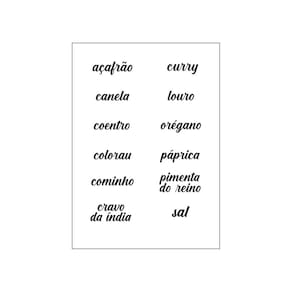 Contem:12 Etiquetas para Temperos Medidas: 7 x 2,5 cmMaterial: Vinil