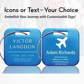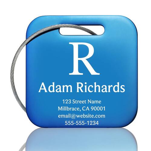 Etiquetas de bagagem de aço inoxidável personalizadas: personalize suas malas, mochilas e bolsas com seu texto (azul) - Etiquetas de bagagem de metal: Estrutura resistente em aço inoxidável para maior durabilidade. - Fácil de reivindicar: vários padrões de etiqueta de bagagem, fácil de detectar. - Fácil de fixar: fixação segura do cinto para evitar desprendimento acidental. - Gravação a laser: Gravação a laser frente e verso para um visual premium. - Presentes perfeitos: Ideal para pais, amigos, irmãos e muito mais.