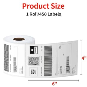 - Tamanho da etiqueta: 4 “x 6" (101,6 mm x 152,4 mm). 450 etiquetas de envio por rolo. Dicas: É adequado apenas para impressoras térmicas, não impressoras a laser ou jato de tinta, não para impressoras Dymo.