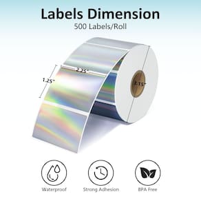 Eleve sua marca comercial com nossas etiquetas térmicas holográficas, uma mistura hipnotizante de funcionalidade e estética atraente. Projetadas para impressoras térmicas e trabalhadas com precisão em papel adesivo de impressora térmica premium, essas etiquetas redefinem a arte de etiquetar, tornando cada impressão uma obra-prima visual. Precisão de impressão cristalina: Liberte o potencial da sua impressora térmica com adesivos holográficos. Especificamente projetado para etiquetas térmicas diretas, esses adesivos garantem que todos os detalhes sejam capturados com clareza incomparável. Diga adeus a manchas e impressões borradas; adote um novo padrão de precisão de impressão. Versatilidade para cada tarefa: se você está organizando seu inventário, enviando produtos ou etiquetando itens para venda, nossas etiquetas térmicas para impressoras térmicas são a solução ideal. As etiquetas térmicas diretas garantem uma impressão suave, eliminando a necessidade de fitas ou toners de tinta, tornando seu processo de etiquetagem eficiente e econômico. Brilho holográfico deslumbrante: Destaque-se no mercado lotado com nossos adesivos holográficos. O jogo dinâmico de cores em nosso design holográfico adiciona um toque de magia aos seus produtos, transformando-os em obras-primas que chamam a atenção. Nossos adesivos térmicos não são apenas etiquetas; eles são uma experiência visual que ressoa com sua marca. Expresse gratidão com estilo: melhore a experiência do seu cliente com nossos adesivos "obrigado por apoiar meus adesivos de pequenas empresas". Estes adesivos de impressora térmica vão além da funcionalidade, adicionando um toque pessoal à sua embalagem. Mostre apreço aos seus clientes, construindo uma conexão mais forte entre sua marca e seus apoiadores. Compatibilidade confiável: Nosso compromisso com a qualidade se estende à compatibilidade. A etiqueta térmica funciona perfeitamente com várias impressoras térmicas, garantindo uma experiência de impressão complicada. Chega de preocupações de compatibilidade – apenas etiquetagem confiável e eficiente para empresas de todos os tamanhos. - Efeitos visuais deslumbrantes: nossas etiquetas térmicas de prata holográficas apresentam uma superfície de vinil metálico arco-íris hipnotizante que transforma as cores na luz, garantindo uma experiência visual cativante e única. Cause uma impressão inesquecível que se destaca! - Impressão sem limites: libere o potencial da impressão térmica com nossa etiqueta térmica. Sem necessidade de tinta, toner ou fitas! Aproveite a conveniência da impressão térmica direta enquanto elimina a necessidade de suprimentos adicionais. - Soluções de etiqueta versáteis: oferecemos autenticidade em dois tamanhos - escolha entre retângulo de 5,7 cm x 3,2 cm (500 etiquetas/rolo) ou redondo de 5 cm (400 etiquetas/rolo). Eleve seu jogo de embalagem com etiquetas adesivas térmicas, garantindo impressão clara e aplicação complicada. - Qualidade intransigente: nossas etiquetas térmicas oferecem mais do que estética. Experimente impressão nítida, aderência autoadesiva forte e durabilidade. À prova d'água, à prova de óleo e resistente a arranhões, essas etiquetas protegem seu produto sem compromisso. Fácil de remover sem danificar! - Universal: nossos adesivos de etiqueta térmica são de BPA e BPS, o que os torna seguros para todos. Abrace a sustentabilidade sem sacrificar a qualidade – uma escolha para o planeta e o sucesso do seu negócio!