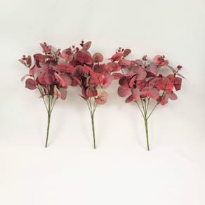 Eucalipto Vermelho Buquê Planta Artificial 36cm 5 Galhos Kit com 3 Buquês de Eucalipto Artificial Roxo Inigual Decor