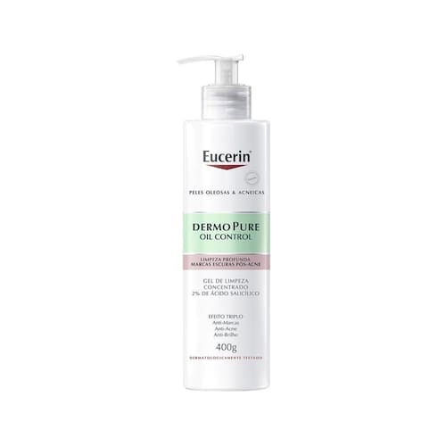 O que é Dermopure Oil Control Gel de Limpeza Concentrado é um gel de limpeza dermatológico, desenvolvido especialmente para peles oleosas e acneicas. Sua fórmula concentrada oferece um efeito triplo, combatendo marcas, acne e o brilho excessivo da pele. Para que serve Limpa profundamente a pele, removendo impurezas, cravos e excesso de oleosidade, ao mesmo tempo em que ajuda a combater espinhas, reduzir marcas pós-acne e controlar o brilho excessivo. Ele promove renovação celular e melhora a textura da pele, sem ressecar ou obstruir os poros. Benefícios e diferenciais: - Limpeza profunda e concentrada - Antiacne - Antimarcas - Antibrilho - Para pele oleosa e acneica - Para o rosto e corpo - 2% de ácido salicílico - Com complexo de hidroxiácidos - Fórmula não comedogênica Marca: Não Informado Ean: 4006000075389