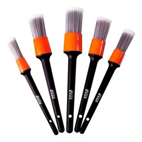 Evox Kit Pinceis Detail Uso Interno Kit 5 Pincéis internos Kit de pincéis de detalhamento automotivo, desenvolvidos para limpeza das partes internas mais delicadas do automóvel. Composto por cerdas sintéticas com filamento cônico macias, flexíveis e duráveis. Contém 5 unidades INDICAÇÕES DE USO: Indicado para limpeza de costura de banco de couro, banco de tecido, volante, rádio, saída de ar condicionado, painel, emblemas e cantos de difícil acesso. INFORMAÇÕES ADICIONAIS: Cerdas sintéticas flexíveis de alta qualidade; Resistente a diversos produtos químicos; Não risca a superfície; Pode ser utilizado em local seco ou molhado; Design ergonômico; Cabo em polipropileno (PP); Possui furo no cabo para pendurar. Marca: Não Informado