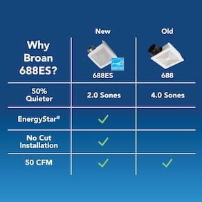 Broan-NuTone® Exaustor de banheiro, grade moderna de 50 CFM, ventilador Energy Star, 2.0 sons