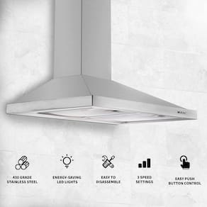 Atenção: Nosso exaustor terá uma capa de película protetora transparente e azul na chaminé, remova cuidadosamente depois de instalado. - Capuz de ventilação de fogão de alta qualidade: feito de aço inoxidável escovado de grau 430 premium, exaustor piramidal clássico se encaixa na maioria das decorações de cozinha. Kit opcional de filtro de carbono disponível para sem dutos (peça de compra # USGDCF-Y)) - Fluxo de ar de 450 CFM: com controle de botão de 3 velocidades, nível de ruído silencioso de 55 dB, iluminação LED com eficiência energética. Seu ventlator de cozinha ideal. - CAPUZ DE COZINHA DE MONTAGEM DE PAREDE: As dimensões da unidade 74,4 cm L x 46,5 cm C x 92,2 cm A, chaminé ajustável de 15-3/10.2 cm a 29-1/5.1 cm (40 cm-75 cm), serve para teto de 2,3-2,6 m. Estende até 3 metros de teto com extensão, precisa ser vendido separadamente (peça #USGDEX-01) - Filtros de capa reutilizáveis: filtros de malha de alumínio de 5 camadas, removíveis e reutilizáveis, fáceis de limpar. - GARANTIA LIMITADA DE PEÇAS DE 5 ANOS: Equipe profissional para oferecer um serviço eficiente. Inclui hardware, instruções, tubo de duto, amortecedor de ar e tampas de duto de combustão de chaminé. Ventilação superior redonda de 15 cm.