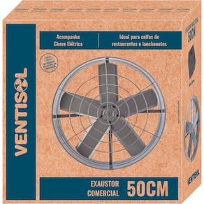 Exaustor 50cmSua empresa ou empreendimento com o ambiente mais arejado.Para grandes áreas que precisem de exaustão, o Exaustor Ventisol 50cm é ideal.Indicado para ambientes como restaurantes e lanchonetes.Sua empresa ou empreendimento com o ambiente mais arejado. Ideal para coifas de restaurantes e lanchonetes:Tira odores e vapores do ambiente. Grande vazão:Alta capacidade de vazão e ventilação. Versatilidade na instalação: Pode ser instalado em paredes e dutos de ventilação. Produto certificado:Produto com certificação do INMETRO.Acompanha chave de controle: Reverte o movimento entre ventilação e exaustão.Vazão: 5000m³/h.Rotação: 1200 RPM - 50/60Hz Potencia:1/4CVGarantia de 12 meses