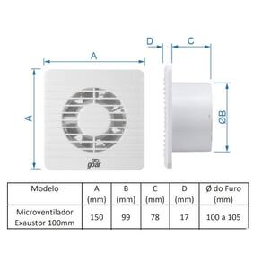Produto: Exaustor para banheiro diâmetro de 100mm - EXB101 Marca: Goar Voltagem: 110VDescrição: O Exaustor para banheiro diâmetro de 100mm - EXB101 da Goar foi desenvolvido para oferecer uma solução eficaz para a ventilação adequada em ambientes úmidos, como banheiros, onde o acúmulo de umidade pode levar ao crescimento de mofo e bolor, além de oferecer um ar mais limpo livre de odores. Com vazão de 92m³/h, pode ser ligado em conjunto com a lâmpada do ambiente, é adaptável a tubos de PVC 100mm e recomendado para ambientes de até 7m². Fácil instalação, baixo consumo energético e com grade de proteção contra insetos. O Microventilador e exaustor de banheiros Goar é o produto perfeito para proporcionar o ambiente mais limpo e saudável. Características: Desempenho Inigualável: Diga adeus à umidade persistente e odores indesejados. Nosso exaustor garante a remoção eficiente do ar úmido, prevenindo o crescimento de mofo e preservando a integridade de suas paredes e móveis. Operação Silenciosa: Nossa tecnologia avançada não exige o silêncio do seu ambiente. Componentes de um banheiro fresco sem ruídos perturbadores. Design Elegante: Com linhas modernas e acabamento sofisticado, nosso exaustor se integra perfeitamente a qualquer estilo de banheiro, adicionando um toque de elegância. Eficiência Energética: Preocupado com o consumo de energia Nosso exaustor foi projetado para ser altamente eficiente, mantendo seus gastos sob controle.Especificações: Vazão: 92 m³/hDiâmetro para encaixe: 100mmAmbiente: Até 7m³Rotação: 2341Potência: 12W. Marca: Não Informado Ean: 7898647086722