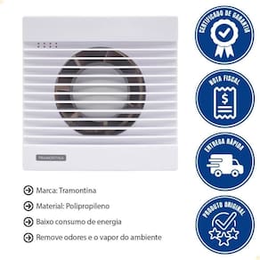 - O Exaustor para Banheiro Tramontina BA 100 é a escolha ideal para ambientes com pouca circulação de ar, pois ajudam a controlar a umidade e a remover o vapor ocasionado por chuveiros e aquecedores.