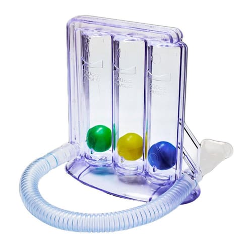 Exercitador Respiratório Incoterm EXR100. É um aparelho para exercícios respiratórios, utilizado para exercícios de inspiração e ideal para fortalecer a musculatura do aparelho respiratório.