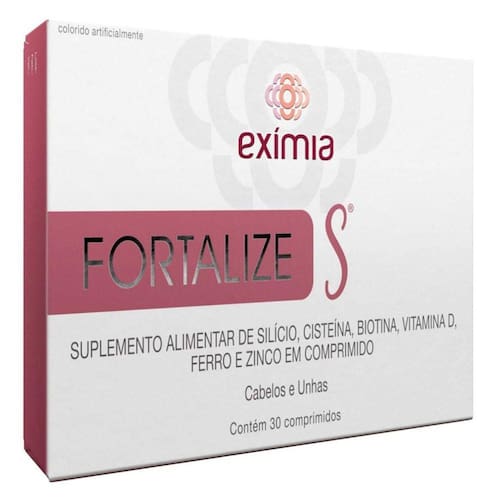 Compre na Drogaria Araujo Exímia Fortalize S é um suplemento alimentar de silício, cisteína, biotina, vitamina D, ferro e zinco em comprimidos. Indicado para cabelos e unhas. Confira!