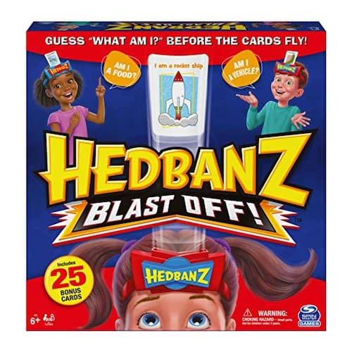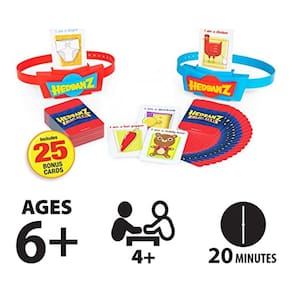 HEDBANZ DECOLOU! é a versão de alto voo, de fala rápida do clássico jogo de adivinhação "Quem Sou Eu?" Cada equipe escolhe um jogador para ser o primeiro Adivinhador e dá-lhes uma banda de temporizador de blastoff para usar. Insira um cartão de imagem sem olhar (para que "Todo mundo saiba menos que você!"), gire o botão do temporizador e comece a fazer perguntas! Sua equipe só pode dar respostas de uma palavra ou fazer sons. Se você adivinhar o cartão na cabeça antes do tempo expirar, insira um novo cartão e reinicie o temporizador. Mas se você for muito lento, o cartão com BLAST OFF, voando da sua bandana – fazendo você começar de novo com um novo cartão! Primeiro time a acertar 3 cartas ganha a rodada; ganhar 3 rodadas, e você ganha o jogo. Inclui 100 novas cartas de imagem para adivinhar, ou adicionar cartas de outras edições do HEDBANZ para manter a diversão! HEDBANZ DECOLOU! é o jogo em família rápido e divertido para 4 ou mais jogadores com 6 anos ou mais.