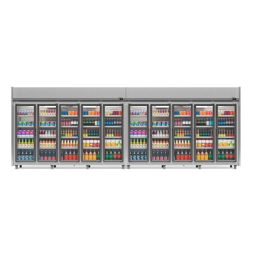 Expositor Refrigerador Vertical Auto Serviço 10 Portas 4 Prateleiras GEAS10P Gelopar. Conservação e Exposição de bebidas, frios e laticínios. Refrigeração: Ar forçado com evaporador aletado. Temperatura: -2 a +10C. Degelo: Automático. Controlador eletrônico com indicador de temperatura. Revestimento Interno: Aço pré-pintado Inox. Iluminação LED (interna), com interruptor. Portas: Medindo 520x1470mm; Vidro temperado, duplo, com gás argônio. Prateleiras aramadas: 4 níveis reguláveis e inclináveis. Pés niveladores. Os módulos da linha Gemini (GEAS-8, 10 e 12) recebem a configuração das cabeceiras diferente dos módulos padrão de linha A geminação é simples. Através de parafusos é feita a união e alinhamento dos módulos. Vidros sujeitos a condensação da umidade do ar. Porta etiquetas acompanham o produto. CAPACIDADE: 3920L. TEMPERATURA: -2 a +10C. CONSUMO: 44,36 kWh/dia. PESO: 580 kg. DIMENSÕES EXTERNAS (CxAxL): 582,6x209,7x58,8cm. Equipamento certificado conforme Portaria Inmetro n 371/2009. Expositor Refrigerador Vertical Auto Serviço 10 Portas 4 Prateleiras GEAS10P Gelopar é na OverFrio.
