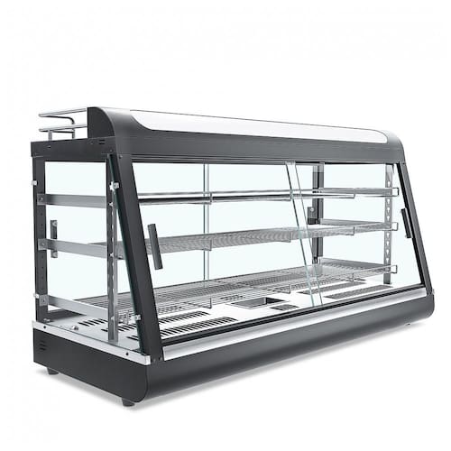 Equipado com fonte de alimentação AC/DC e potência de 900 W, opera em 110 volts para compatibilidade com redes elétricas padrão. Dimensões compactas de 112 x 48 x 64 cm otimizam o uso de balcões. Perfeito para exibição de pizzas, pretzels e outros alimentos, atendendo normas técnicas para conservação térmica em operações comerciais.