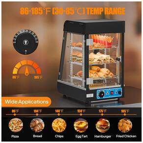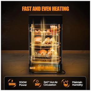 O Expositor Aquecedor de Alimentos ROVSUN 3 Níveis é um equipamento compacto de bancada com estrutura em aço inoxidável anticorrosivo e vidro temperado em quatro faces, projetado para exposição térmica de pizzas, pretzels, hambúrgueres e leite em quiosques, cafeterias, fast-foods, padarias e refeitórios comerciais. A iluminação LED superior proporciona visibilidade uniforme e atrativa em 360 graus, enquanto as prateleiras removíveis e ajustáveis permitem adaptação flexível a diferentes tamanhos de produtos. ?