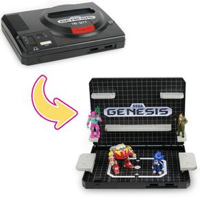 Expositor Bundle Supervillano de Console Heroes SEGA Genesis – Incluye 4 Figuras de Villanos + Bandeja para Almacenamiento de Cartuchos – Set Oficial para Coleccionistas SEGA. - LA BATALLA FINAL COMIENZA AQUÍ. Este bundle de supervillanos es un homenaje definitivo a algunos de los villanos más emblemáticos de la historia de los videojuegos clásicos. - VUELTA A LOS 90's. Inspirado en la legendaria consola SEGA Genesis, con líneas de cuadrícula auténticas y estantes para exhibición. Abre el cartucho para liberar un detallado diorama de arena de jefe, lleno de vibras de nivel final. - VILLANOS LEGENDARIOS. Incluye mini figuras exclusivas de cuatro jefes icónicos, perfectas para recrear batallas épicas o mostrar la supremacía villana – Death Egg Robot, Mecha Sonic Mk II, Mr. X y Death Bringer. - INCLUYE BANDEJA DE ALMACENAMIENTO. Cierra la consola y coloca cualquier cartucho en la parte superior para una apariencia retro auténtica. Incluye una gran bandeja para organizar y exhibir hasta 6 cartuchos de Console Heroes. - COMPATIBLE. Totalmente compatible con todos los cartuchos de diorama Console Heroes (se venden por separado). Se pliega para una exhibición compacta, aunque las figuras no se almacenan en el interior.