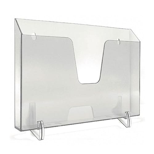 Expositor horizontal ideal para apresentar material publicitário como panfletos, folders, avisos, catálogos, revistas, cardápios ou o que você quiser. Indicado para ser colocado em locais de grande circulação como bancos, hospitais, hotéis, clínicas médicas, consultórios, agências de viagens, edifícios governamentais, lojas, feiras e exposições. Ótima estabilidade sobre mesas e balcões com uso dos suportes de base inclusos. Pode ser utilizado em superfície plana, como mesa, bancada ou montado na parede. Possui orifícios na parte traseira, permitindo que o produto seja fixado ou pendurado.