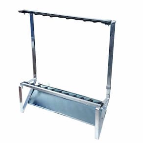 Feito em Alumínio, encostos em borrachas e Apoio em ferro pintado em prata (zincado)