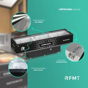 Expositor Ilha Vanguard Top de Congelados e Resfriados Vidro Semicurvo 2,00m Eivt 2000 - Refrimate 220v