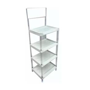 - 4 prateleiras de plastico injetado com 49,5x40cm e de area util interno 49x30,5cm . - 1 testeira com 45x20cm - 12 tubos de 31cm para os vãos das prateleiras vão 27,5cm - 2 tubos de 40cm com rasgo testeira - 4 tubos de 10cm pés