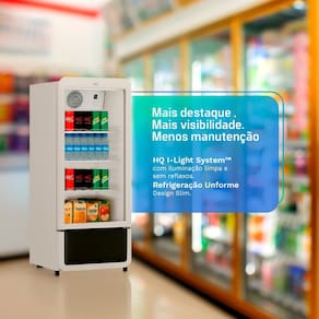 A iluminação embutida HQ I-Light System entrega visibilidade superior, com luz limpa e antirreflexo, ideal para destacar bebidas, laticínios e itens refrigerados. O modelo conta ainda com o sistema de auto evaporação HQ AutoDrain, que elimina a água do degelo sem necessidade de dreno, e a barreira de condensação HQ DryShield, que reduz drasticamente a formação de gotas na porta de vidro.