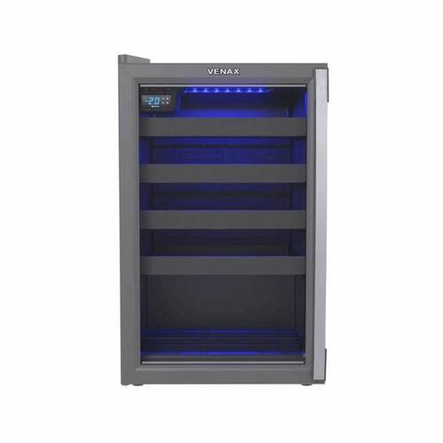- Destaque suas bebidas com elegância na Expositora Champanheira Venax 100L! - Com design moderno em grafite, porta invertida e iluminação LED azul, ela oferece sofisticação e eficiência. - Perfeita para conservar champanhes e vinhos na temperatura ideal (0C a 8C), impressionando em qualquer ambiente. - Estilo e desempenho que fazem a diferença!