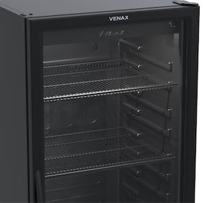 Características: Expositora de Bebidas VV 400. Porta de Vidro Duplo Low-E, Puxador em Aço Pintado em Epóxi,Controle de Temperatura Mecânico Regulável de 0C até 5C, Iluminação Interna em LED na Cor Branca, Quatro Prateleiras Reguláveis, com Sistema de Refrigeração por Compressor.
