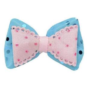 Este pacote contém 20 peças de apliques de laço duplo com paetê nas cores azul bebê e rosa. Cada aplique possui 71mm de tamanho.