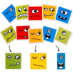JOGO DE QUEBRA-CABEÇA COM EXPRESSÕES: O brinquedo Blocks é adequado para crianças de 3 a 12 anos e é um ótimo brinquedo de jogo interativo. As crianças pegam um cartão e constr os blocos de acordo com a referência. O que leva o menor tempo ganha. BRINQUEDO DE BLOCO DE CONSTRUÇÃO DIVERTIDO: O brinquedo do quebra-cabeça do bloco tem quatro blocos de cores. Cada lado dos blocos tem expressões de desenho animado diferentes e há 50 emoticons bonitos nas cartas diretivas. Parece muito interessante para que possa despertar rapidamente o interesse do seu filho. Os blocos de expressão cubo são feitos de madeira ecológica coberta com tinta lisa e segura à base de água que é inodora e não tóxica e perfeita para as crianças brincarem. HABILIDADES DE MELHORIA: O brinquedo de bloco de expressão tem uma aparência fofa e divertida para que as crianças se concentrem rapidamente e aproveitem este brinquedo. Estimula a atenção das crianças e aumenta sua coordenação mão-olho, raciocínio lógico, habilidade prática e habilidades motoras finas. Além disso, o jogo interessante mantém as crianças longe das telas eletrônicas, o que ajuda a proteger sua visão. BOM JOGO SOCIAL: A caixa de embalagem robusta torna este brinquedo portátil. As crianças podem brincar com seus familiares, bem como com seus colegas de escola. Este jomove as habilidades interpessoais das crianças e aprofunda as amizades entre as crianças. PRESENTE INCRÍVEL: A caixa de brinquedos e cartões são cartunescos e infantis, perfeitos como presente infantil. A caixa foi projetada com ranhuras pensativas para as crianças pegarem os blocos cubos, que é fácil de armazenar fácil de transportar. Sem dúvida, as crianças vão adorar esse presente.