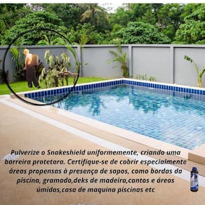 Produto snakeshield repelente de cobras e sapos Características Formulação avançada desenvolvida por especialistas, altamente eficaz. Fácil aplicação diluir e pulverizar para criar uma barreira protetora. Seguro e não tóxico sem substâncias prejudiciais, seguro para crianças e animais. Aroma agradável desagradável para cobras e sapos, agradável para humanos. Proteção versátil pode ser em várias áreas, como quintais, casas, piscinas, etc. Descrição do produto O snakeshield repelente de cobras e sapos é uma solução eficaz para manter áreas livres dessas pragas. Sua fórmula avançada, de fácil aplicação, cria uma barreira protetora duradoura. Seguro e com aroma agradável, pode ser em diferentes ambientes. Diluição de 100 ml a 300 ml por litro de água,fazer pulverização ao redor da casa,escola,industria,sitio,fazenda Produto não tóxico a animais pet e humanos Fazer pulverizaçao ao redor onde queira proteger,fazendo um circulo de proteção Embalagem com 1 litro,mais um pulverizador de garrafa pet para aplicaçao