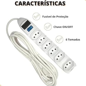 A extensão elétrica acompanha um cabo de 1,5 metros de comprimento, o que proporciona uma maior flexibilidade na hora de posicionar os aparelhos.