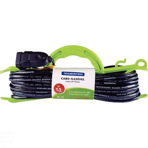 Na hora de cortar a grama ou usar ferramentas elétricas, é muito importante garantir um longo alcance e a segurança na hora de ligá-las. Para isso, conte com a Extensão Cabide 1,5 mm² Tramontina 30 m. Com ela, suas atividades serão realizadas com muito mais praticidade e eficiência, pois ela conta com 30 metros de comprimento e suporta 1200 W em 127 e 2200 W em 220 V de potência. Ela ainda vem acompanhada de um cabide em termoplástico na cor verde, que lhe auxilia na utilização e facilita a hora de enrolá-la e armazená-la. A ajudante perfeita nas suas tarefas domésticas ou no trabalho! Orientações . Características Gerais EAN13 7891435043815 DUN14 17891435043812 NCM 8544.42.00 Peso Líquido 2,1600 kg. Peso Bruto 2,2800 kg. Metragem 0,004000 m³. Dimensões Embalagem (Compr. X Larg. X Alt.) 400x 100x 100 mm. Dimensões Produto (Compr. X Larg. X Alt.) 400x 100x 100 mm. Cor 1 000000 Hexa Cor 2 32CD32 Hexa Observações .