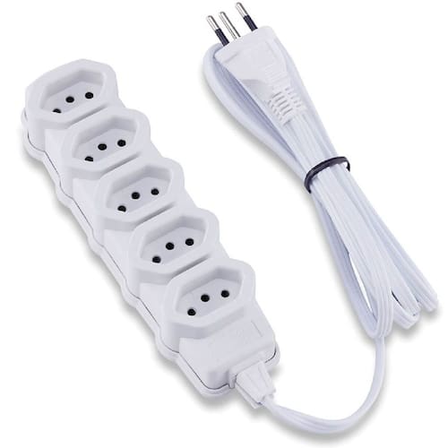 - Extensão com Terra 5 Entradas Cabo 3x0,75mm 5 Metros