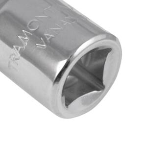 Extensão Usinada 10" Encaixe 1/2" Tramontina MASTER em Aço Cromo Vanádio com Acabamento Cromado Detalhes do produto A Extensão Usinada 10 Polegadas Encaixe 1/2 polegada Tramontina MASTER em Aço Cromo Vanádio com Acabamento Cromado é a peça ideal para você ter no seu kit de ferramentas. Tem encaixe de 1/2 polegada e tamanho de 5 polegadas, ele é produzido em aço cromo vanádio com acabamento cromado e é projetado para aumentar o alcance dos soquetes em lugares profundos e de difícil acesso Informações técnicas Forjado em aço cromo vanádio e temperado. Acabamento cromado.