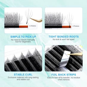 NAGARAKU Extensão de cílios em forma de W 5D Versão 2.0 Suprimentos de cílios Natural Macio Volume 0,07 mm C Curl 9 mm Ventiladores Pré-fabricados PBT Preto Fosco Cluster W Lash Easy Fanning Cílios - 5D W LASH VERSÃO 2.0: As raízes das 5 extensões de cílios individuais são unidas como uma forma de W. Estas são chamadas de extensões de cílios W Clover. É muito fácil fazer ventiladores ao agarrar com uma pinça, você pode obter rapidamente o conjunto de ventiladores de volume 5D sem nenhuma habilidade - Visual exclusivo: O conjunto especial de volume de base de cílios finos com 5 pontas torna a extensão mais graciosa e fofa, a versão 5D W Eyelashes 2.0 foi atualizada com um design de comprimento de três segmentos, o que torna os cílios mais naturais e densos. O arranjo das raízes planas é claramente visível e os cílios são fáceis de pegar sem quebrar as raízes - ECONOMIZANDO TEMPO: em comparação com outras extensões de cílios clássicas, as extensões de cílios W são feitas à mão em forma de W e podem ser usadas diretamente. Enxertar 5 extensões de cílios ao mesmo tempo, muito adequado para uso intenso em salões, para uma pessoa precisa de cerca de 100-140 feixes, 1 bandeja de cílios pode ser usada em 10-15 clientes. - MATERIAL PREMIUM: Os ventiladores de cílios W Clover são feitos por um material exclusivo pesquisado e desenvolvido que é leve, macio e natural. A qualidade dos nossos cílios foi certificada pela SGS, MSDS. - FÁCIL DE USAR: O papel de parede laminado é conveniente para coleta e transferência, não há resíduos no azulejo dos cílios. Mesmo se você for um iniciante, você pode facilmente usar os cílios W pré-fabricados. Você pode escolher a extensão de cílios satisfatória em forma de W de acordo com suas necessidades.