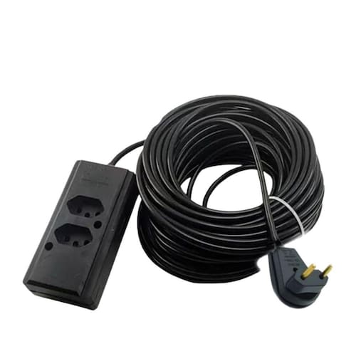 CARACTERÍSTICAS E VANTAGENS: - Extensão flexível, fácil de enrolar, transportar e armazenar. - Dupla camada de isolamento. - Cabo flexível PP 500V. - Seção Nominal: 2x2,5mm2. - Pino macho de 10A. - Tomada Femea Dupla, serve o pino Fino de 10a e Também o pino Grosso de 20a - Funcionara em 127 volts como em 220 volts