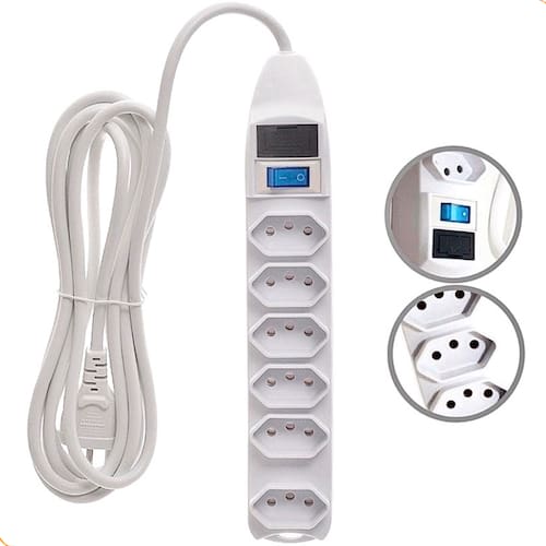 Extensão para conexão de até 6 tomadas simultaneamente utilizando apenas uma tomada.